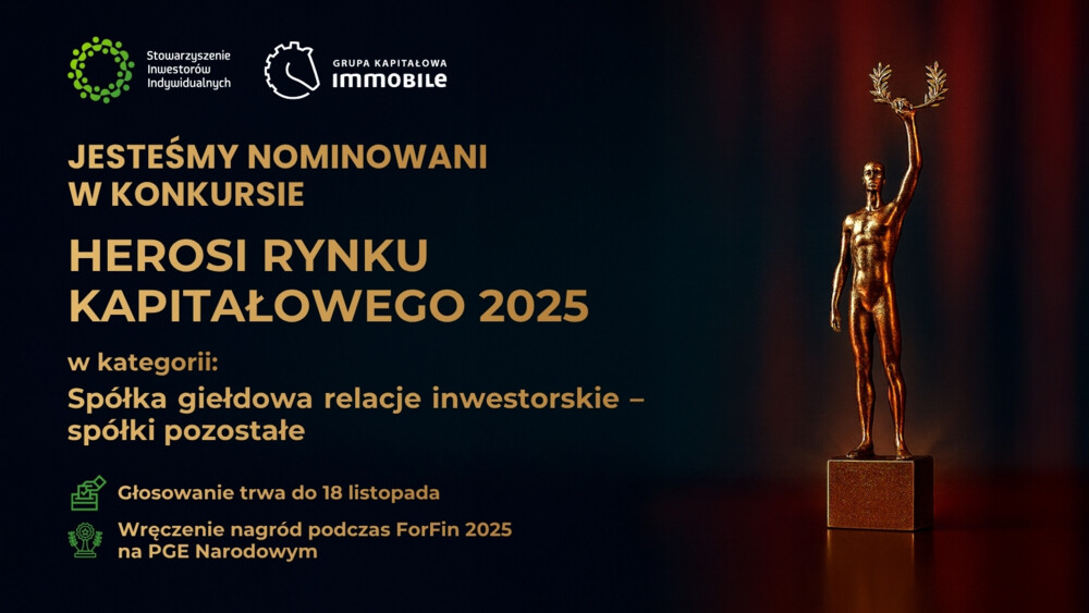 Grupa Kapitałowa Immobile została wyróżniona w plebiscycie Stowarzyszenia Inwestorów Indywidualnych. O tym, kto otrzyma nagrodę za najlepsze relacje inwestorskie, zdecyduje internetowe głosowanie.