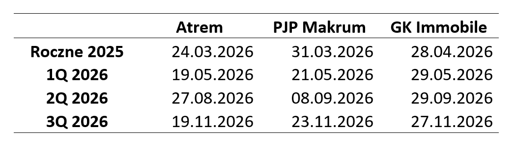 Zarządy Atremu, PJP Makrum oraz Grupy Kapitałowej Immobile przekazały do publicznej wiadomości terminy publikacji raportów okresowych w 2026 roku.