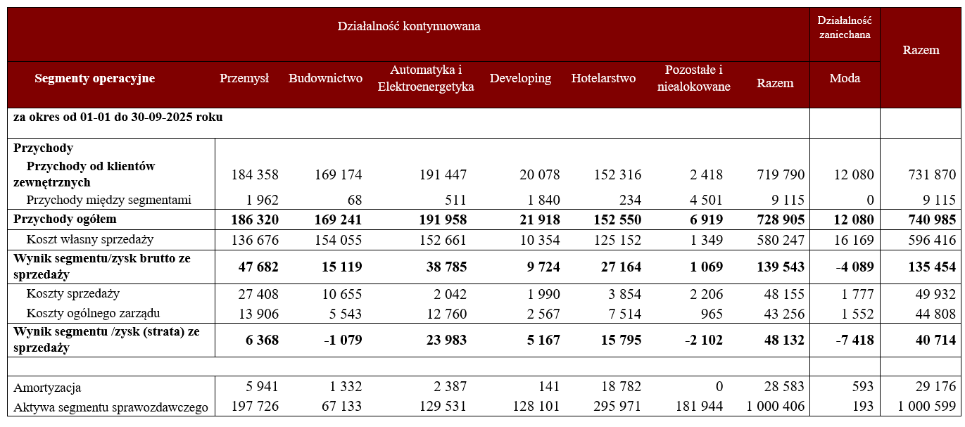 Na działalność GK Immobile składa się pięć segmentów. Wyniki trzech z nich były już znane wcześniej. Przemysł oraz budownictwo przemysłowe działają w ramach notowanej na GPW spółki PJP Makrum S.A., a za automatykę i elektroenergetykę odpowiada Atrem S.A.